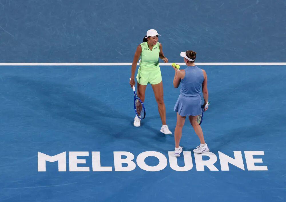 而在北京时间1月28日,本届澳网的第11个比赛日,女双1/4决赛当中,4号种子张帅/梅尔滕斯以4:6、6:4、6:3逆转穗积绘莉/吴芳娴,率先晋级四强。